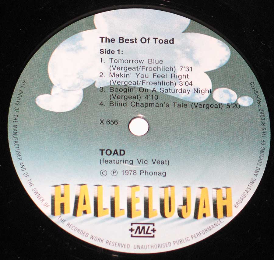 "The Best Of Toad" +ML+ Record Label Details: Hallelujah Records X 656 Phonag © ℗ 1978 Phonag Sound Copyright