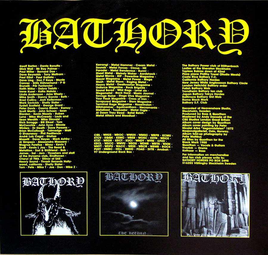 Inner Sleeve of "BATHORY - Blood Fire Death FOC Gatefold" Album |