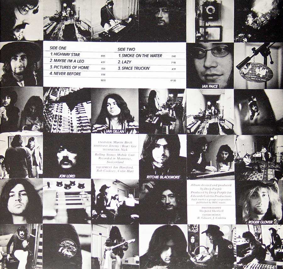 A collage of small photos of the Deep Purple band-members, and production information on the inner page of the gatefold cover