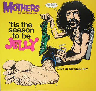 The hilarious album front cover of Frank Zappa's unofficial album "'Tis the season to be jelly" is an illustration of Frank Zappa wearing an Oxygen tank and showing off his green smelly sock.
