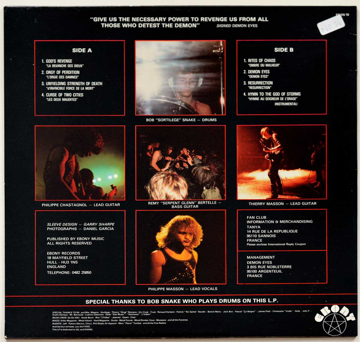 The lineup for "Rites of Chaos" consisted of talented musicians who contributed to the album's overall brilliance. Philippe Masson took on the role of lead vocalist, delivering captivating performances that embodied the spirit of heavy metal. Philippe Chastagnol and Thierry Masson provided the driving force with their remarkable guitar work, delivering blistering solos and crushing riffs that showcased their technical prowess. Rémy "Serpent Glenn" Bertelle's skillful bass guitar playing added depth and intensity to the music, while Bob "Sortilege" Snake, also known as Jean-Philippe "Bob Snake" Dumont, brought his expertise from his work with the cult French heavy metal band "Sortilège" to create a thunderous rhythmic foundation on the drums.