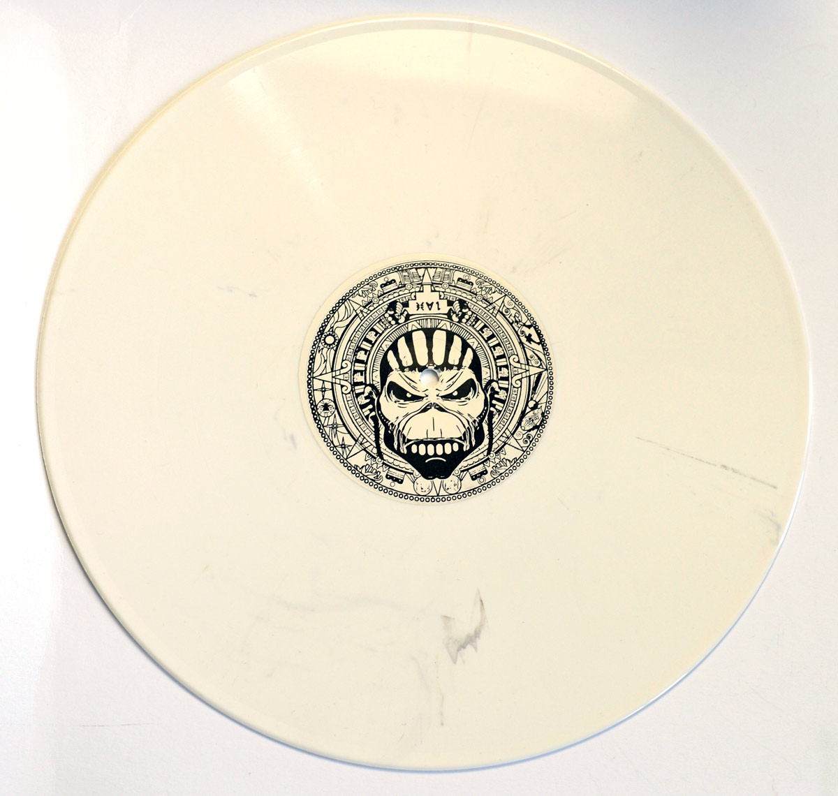 Unlike standard label layouts, this Side Two design contains no track information, catalog numbers, or text of any kind. This reinforces the bootleg nature of the release and shifts all visual focus to Eddie’s central portrait and the ornate emblem surrounding him. The stark contrast between the dark illustration and the pale vinyl surface gives the record a dramatic, collector-driven aesthetic.
