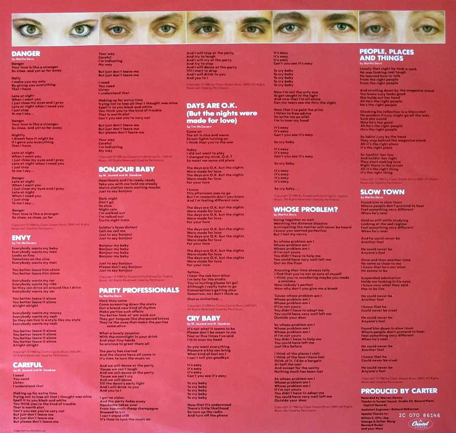 The album: "MOTELS - Careful" was produced by: John Carter Direction: Ken Fritz, Dennis Turner This album was recorded by: Warren Dewey, Richard McKornen at Sunset Sound Studio, Record Plant, Capitol Records |