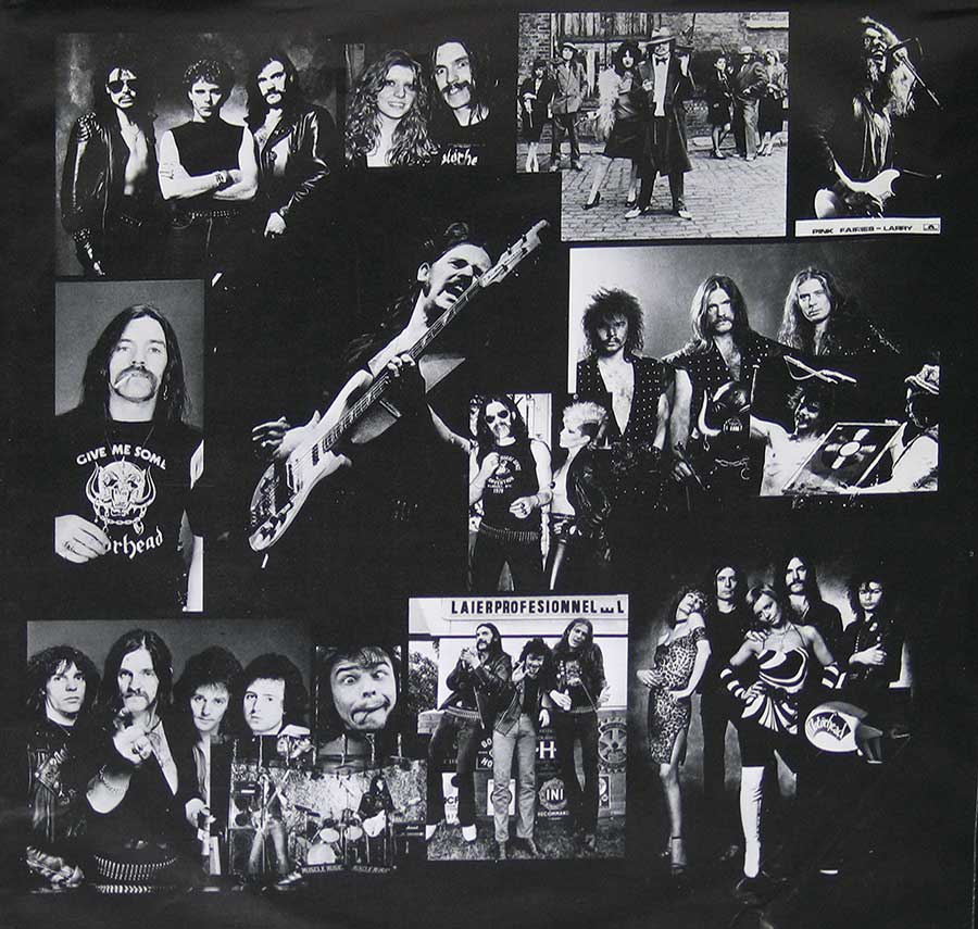A collage of Motorhead photos ( incl their groupies ) on the original custom inner sleeve