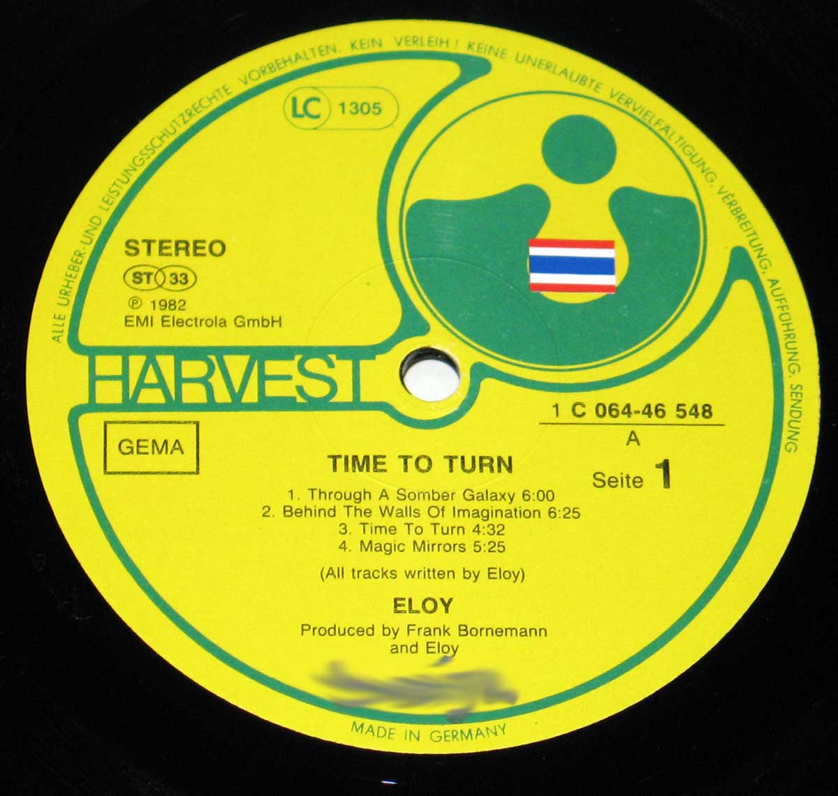 Enlarged & Zoomed photo of "ELOY Time to Turn" Record's Label |