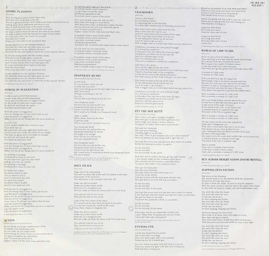 The Song/tracks on "Steve Stevens Atomic Playboys" are