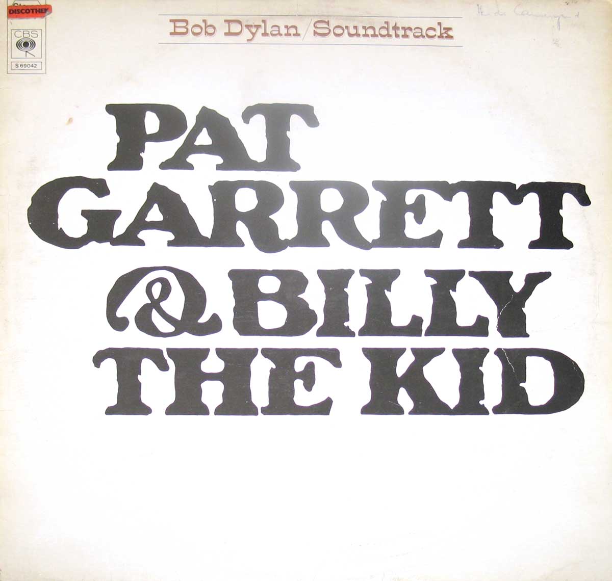 Photo of BOB DYLAN Pat Garrett & Billy The Kid Soundtrack Album's Front Cover |