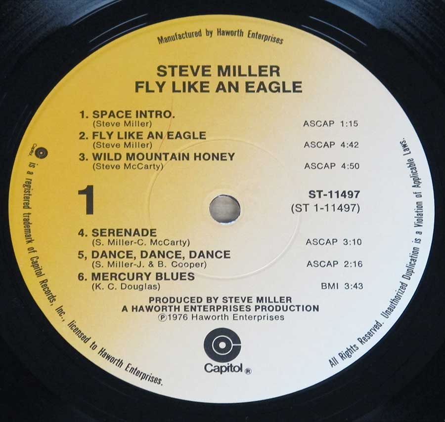 "Fly Like an Eagle" Record Label Details: Capitol ST-11497 ℗ 1976 Haworth Enterprises Sound Copyright